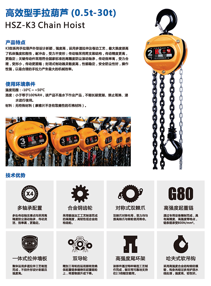 8.起重鏈條是特殊合金鋼制作并經過熱處理,不能私自進行焊接或改裝。